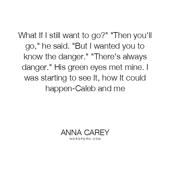 What If I still want to go?" "Then you'll go," he said. "But I wanted you to know the danger." "There's always danger." His green eyes met mine. I was starting to see It, how It could happen-Caleb and me