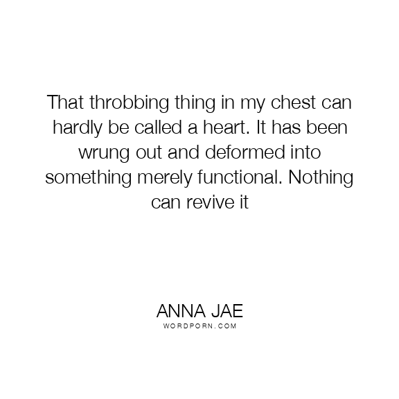 That throbbing thing in my chest can hardly be called a heart. It has been wrung out and deformed into something merely functional. Nothing can revive it