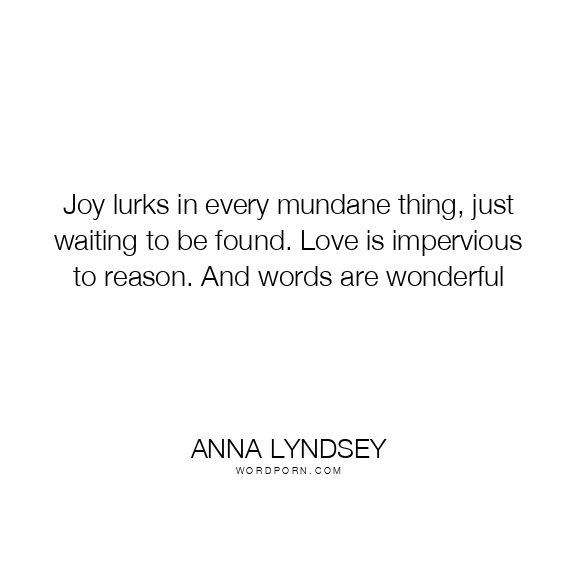 Joy lurks in every mundane thing, just waiting to be found. Love is impervious to reason. And words are wonderful