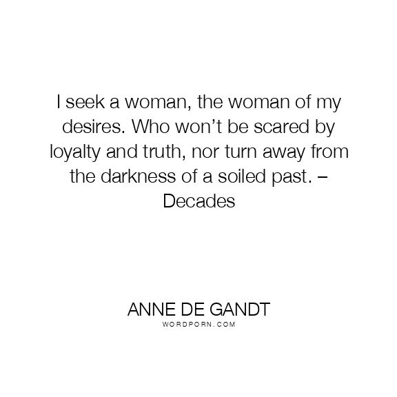 Copy Image I seek a woman, the woman of my desires. Who won’t be scared by loyalty and truth, nor turn away from the darkness of a soiled past. – Decades Moms Typewriter A A SAVE THIS IMAGE