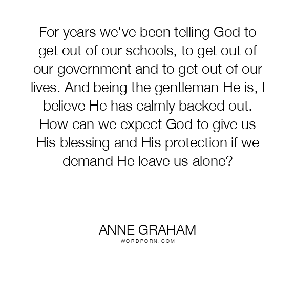 For years we've been telling God to get out of our schools, to get out of our government and to get out of our lives. And being the gentleman He is, I believe He has calmly backed out. How can we expect God to give us His blessing and His protection if we demand He leave us alone?