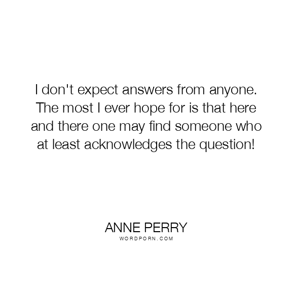 I don't expect answers from anyone. The most I ever hope for is that here and there one may find someone who at least acknowledges the question!
