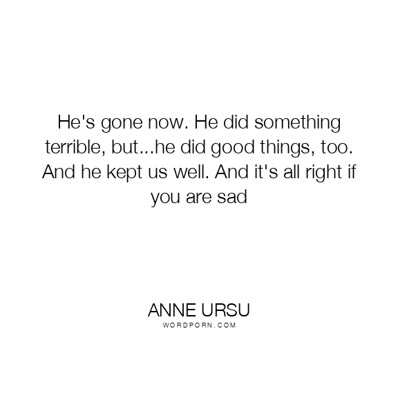 He's gone now. He did something terrible, but...he did good things, too. And he kept us well. And it's all right if you are sad