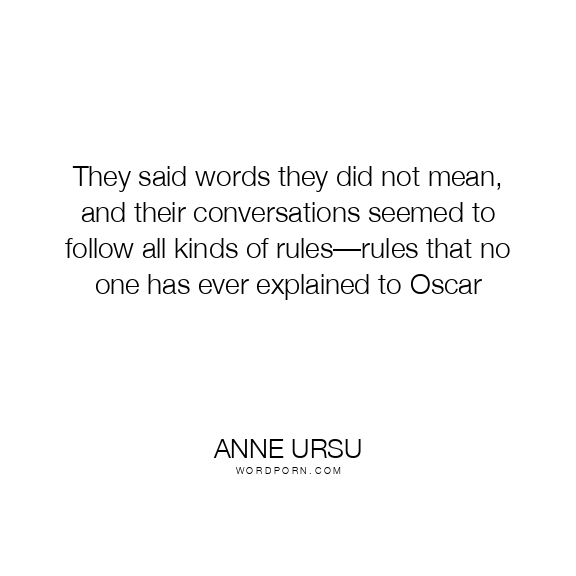 They said words they did not mean, and their conversations seemed to follow all kinds of rules—rules that no one has ever explained to Oscar