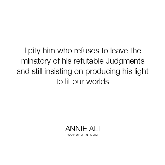 I pity him who refuses to leave the minatory of his refutable Judgments and still insisting on producing his light to lit our worlds