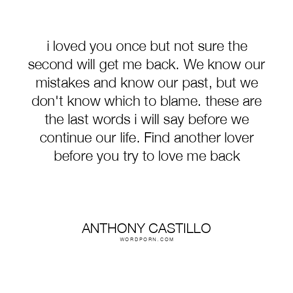 i loved you once but not sure the second will get me back. We know our mistakes and know our past, but we don't know which to blame. these are the last words i will say before we continue our life. Find another lover before you try to love me back