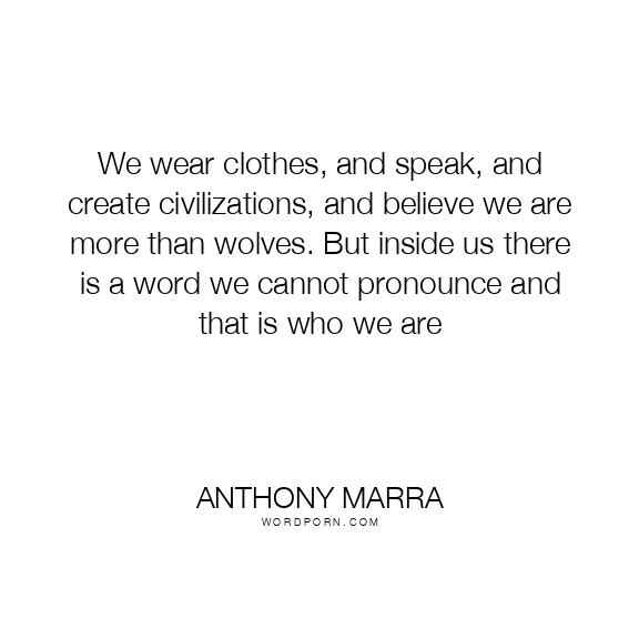 We wear clothes, and speak, and create civilizations, and believe we are more than wolves. But inside us there is a word we cannot pronounce and that is who we are