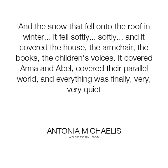 And the snow that fell onto the roof in winter... it fell softly... softly... and it covered the house, the armchair, the books, the children's voices. It covered Anna and Abel, covered their parallel world, and everything was finally, very, very quiet