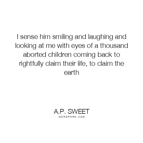 I sense him smiling and laughing and looking at me with eyes of a thousand aborted children coming back to rightfully claim their life, to claim the earth