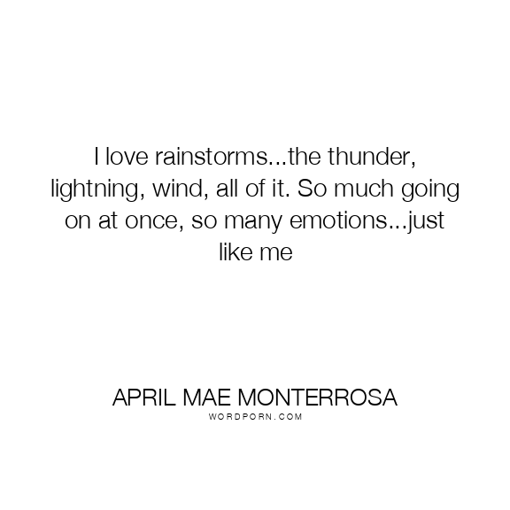 I love rainstorms...the thunder, lightning, wind, all of it. So much going on at once, so many emotions...just like me