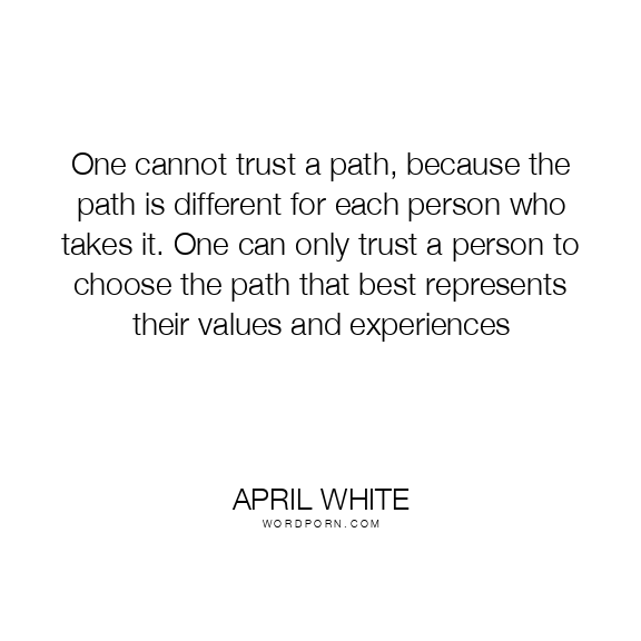 One cannot trust a path, because the path is different for each person who takes it. One can only trust a person to choose the path that best represents their values and experiences