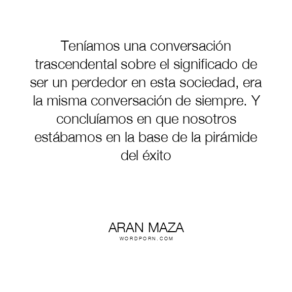 Teníamos una conversación trascendental sobre el significado de ser un perdedor en esta sociedad, era la misma conversación de siempre. Y concluíamos en que nosotros estábamos en la base de la pirámide del éxito