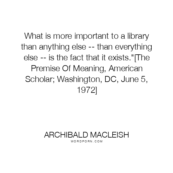 Archibald MacLeish quote. What is more important to a library than anything else -- than everything else -- is the fact that it exists.
