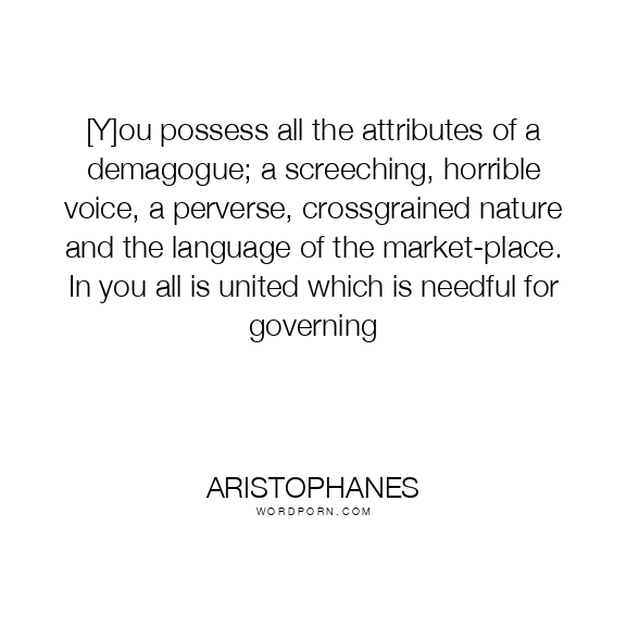 [Y]ou possess all the attributes of a demagogue; a screeching, horrible voice, a perverse, crossgrained nature and the language of the market-place. In you all is united which is needful for governing