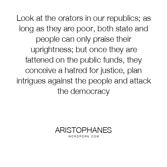 Look at the orators in our republics; as long as they are poor, both state and people can only praise their uprightness; but once they are fattened on the public funds, they conceive a hatred for justice, plan intrigues against the people and attack the democracy