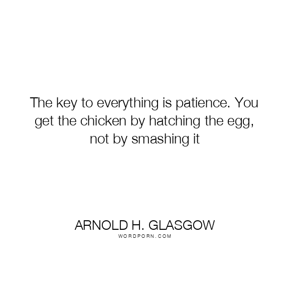 Copy Image The key to everything is patience. You get the chicken by hatching the egg, not by smashing it Moms Typewriter A A SAVE THIS IMAGE