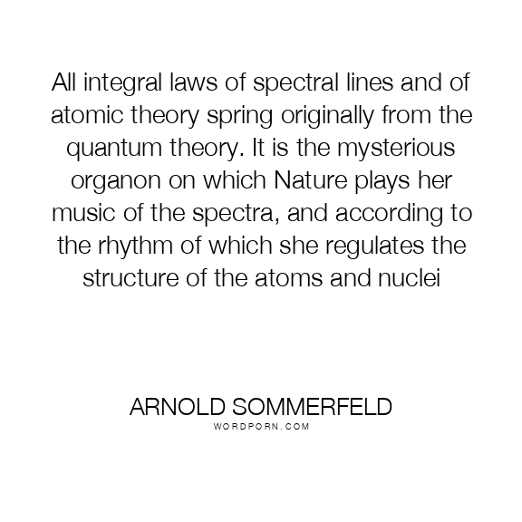 All integral laws of spectral lines and of atomic theory spring originally from the quantum theory. It is the mysterious organon on which Nature plays her music of the spectra, and according to the rhythm of which she regulates the structure of the atoms and nuclei