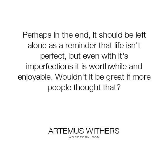 Perhaps in the end, it should be left alone as a reminder that life isn't perfect, but even with it's imperfections it is worthwhile and enjoyable. Wouldn't it be great if more people thought that?