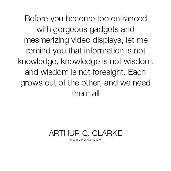 Before you become too entranced with gorgeous gadgets and mesmerizing video displays, let me remind you that information is not knowledge, knowledge is not wisdom, and wisdom is not foresight. Each grows out of the other, and we need them all