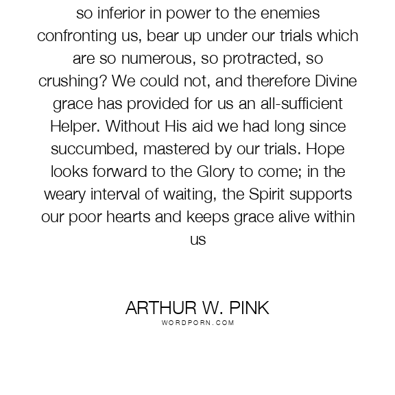 How can we who are so weak in ourselves, so inferior in power to the enemies confronting us, bear up under our trials which are so numerous, so protracted, so crushing? We could not, and therefore Divine grace has provided for us an all-sufficient Helper. Without His aid we had long since succumbed, mastered by our trials. Hope looks forward to the Glory to come; in the weary interval of waiting, the Spirit supports our poor hearts and keeps grace alive within us