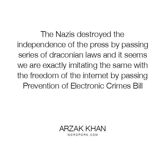 The Nazis destroyed the independence of the press by passing series of draconian laws and it seems we are exactly imitating the same with the freedom of the internet by passing Prevention of Electronic Crimes Bill