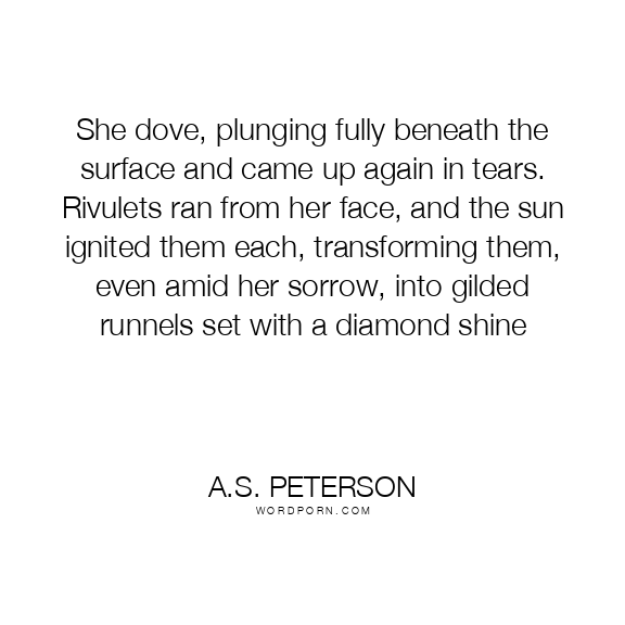 She dove, plunging fully beneath the surface and came up again in tears. Rivulets ran from her face, and the sun ignited them each, transforming them, even amid her sorrow, into gilded runnels set with a diamond shine