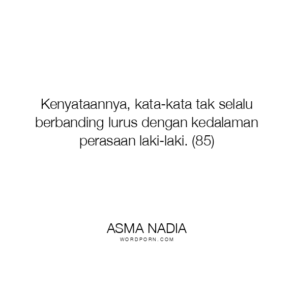 Kenyataannya, kata-kata tak selalu berbanding lurus dengan kedalaman perasaan laki-laki. (85)