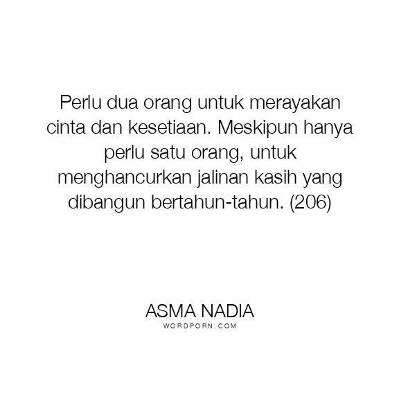 Perlu dua orang untuk merayakan cinta dan kesetiaan. Meskipun hanya perlu satu orang, untuk menghancurkan jalinan kasih yang dibangun bertahun-tahun. (206)