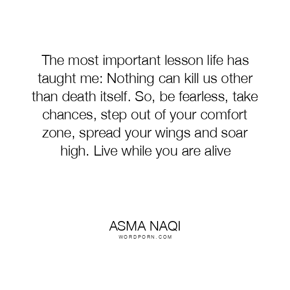The most important lesson life has taught me: Nothing can kill us other than death itself. So, be fearless, take chances, step out of your comfort zone, spread your wings and soar high. Live while you are alive