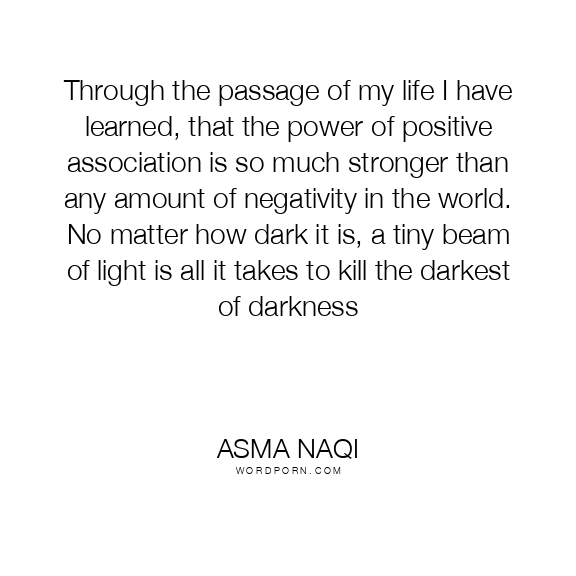 Through the passage of my life I have learned that the power of positive association is so much stronger than any amount of negativity in the world. No matter how dark it is, a tiny beam of light is all it takes to kill the darkest of darkness