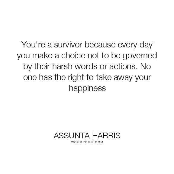 You're a survivor because every day you make a choice not to be governed by their harsh words or actions. No one has the right to take away your happiness