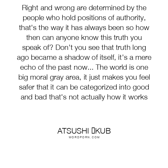 Right and wrong are determined by the people who hold positions of authority, that's the way it has always been so how then can anyone know this truth you speak of? Don't you see that truth long ago became a shadow of itself, it's a mere echo of the past now... The world is one big moral gray area, it just makes you feel safer that it can be categorized into good and bad that's not actually how it works