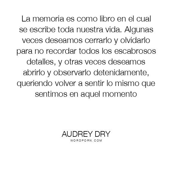 La memoria es como libro en el cual se escribe toda nuestra vida. Algunas veces deseamos cerrarlo y olvidarlo para no recordar todos los escabrosos detalles, y otras veces deseamos abrirlo y observarlo detenidamente, queriendo volver a sentir lo mismo que sentimos en aquel momento