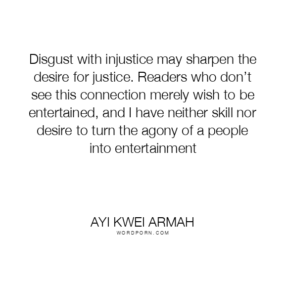 Disgust with injustice may sharpen the desire for justice. Readers who don’t see this connection merely wish to be entertained, and I have neither skill nor desire to turn the agony of a people into entertainment