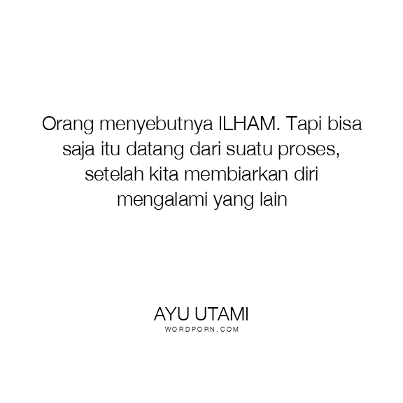 Orang menyebutnya ILHAM. Tapi bisa saja itu datang dari suatu proses, setelah kita membiarkan diri mengalami yang lain