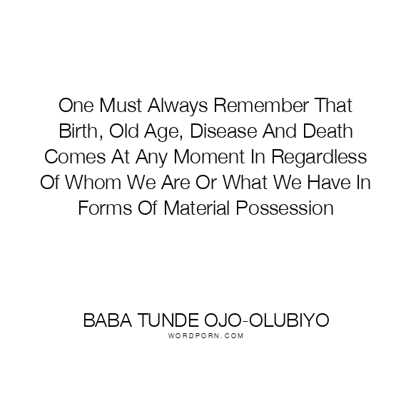 One Must Always Remember That Birth, Old Age, Disease And Death Comes At Any Moment In Regardless Of Whom We Are Or What We Have In Forms Of Material Possession