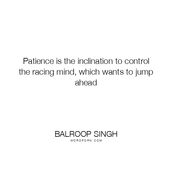 Patience is the inclination to control the racing mind, which wants to jump ahead