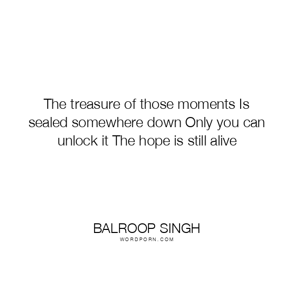 The treasure of those moments Is sealed somewhere down Only you can unlock it The hope is still alive
