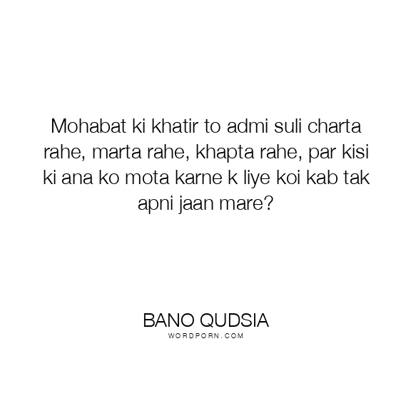 Mohabat ki khatir to admi suli charta rahe, marta rahe, khapta rahe, par kisi ki ana ko mota karne k liye koi kab tak apni jaan mare?