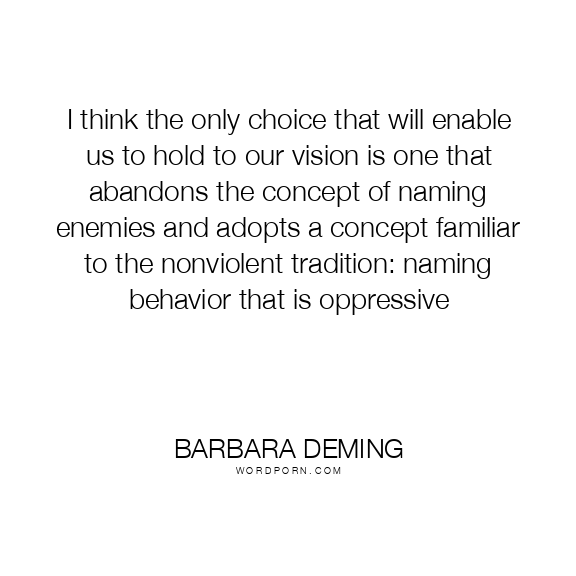 I think the only choice that will enable us to hold to our vision is one that abandons the concept of naming enemies and adopts a concept familiar to the nonviolent tradition: naming behavior that is oppressive