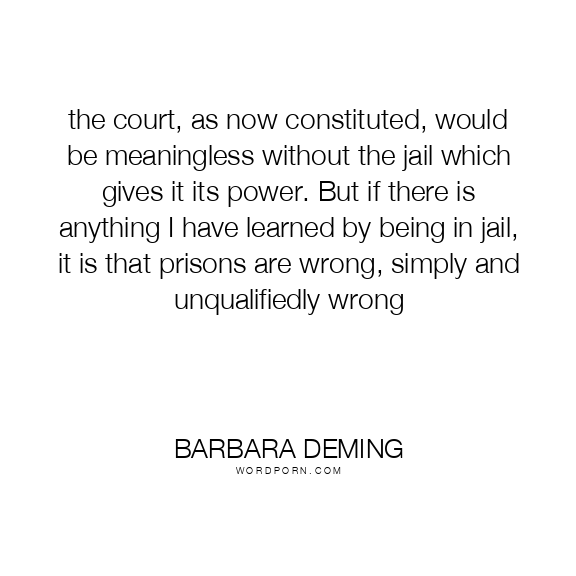 the court, as now constituted, would be meaningless without the jail which gives it its power. But if there is anything I have learned by being in jail, it is that prisons are wrong, simply and unqualifiedly wrong