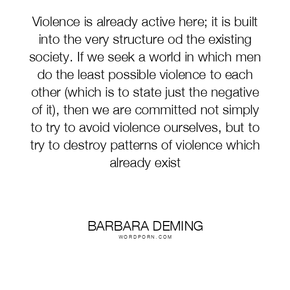 Violence is already active here; it is built into the very structure od the existing society. If we seek a world in which men do the least possible violence to each other (which is to state just the negative of it), then we are committed not simply to try to avoid violence ourselves, but to try to destroy patterns of violence which already exist