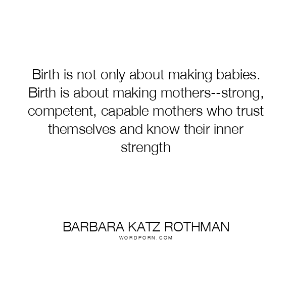 Birth is not only about making babies. Birth is about making mothers--strong, competent, capable mothers who trust themselves and know their inner strength
