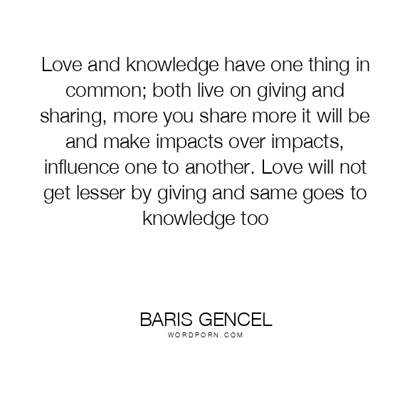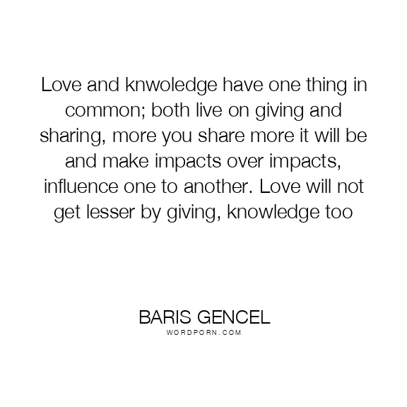 Love and knowledge have one thing in common; both live on giving and sharing, more you share more it will be and make impacts over impacts, influence one to another. Love will not get lesser by giving and same goes to knowledge too