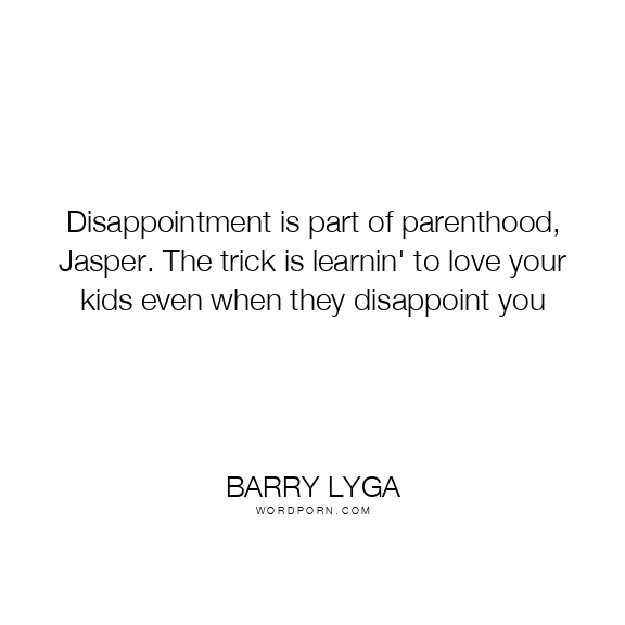 Disappointment is part of parenthood, Jasper. The trick is learnin' to love your kids even when they disappoint you