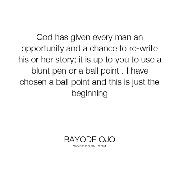 God has given every man an opportunity and a chance to re-write his or her story; it is up to you to use a blunt pen or a ball point . I have chosen a ball point and this is just the beginning