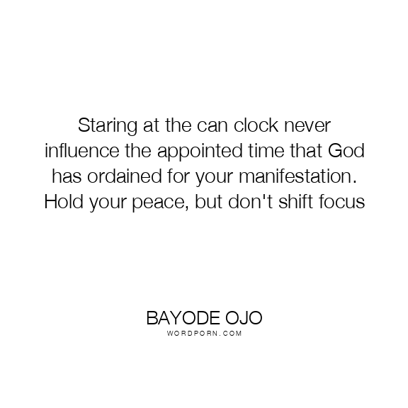 Staring at the can clock never influence the appointed time that God has ordained for your manifestation. Hold your peace, but don't shift focus