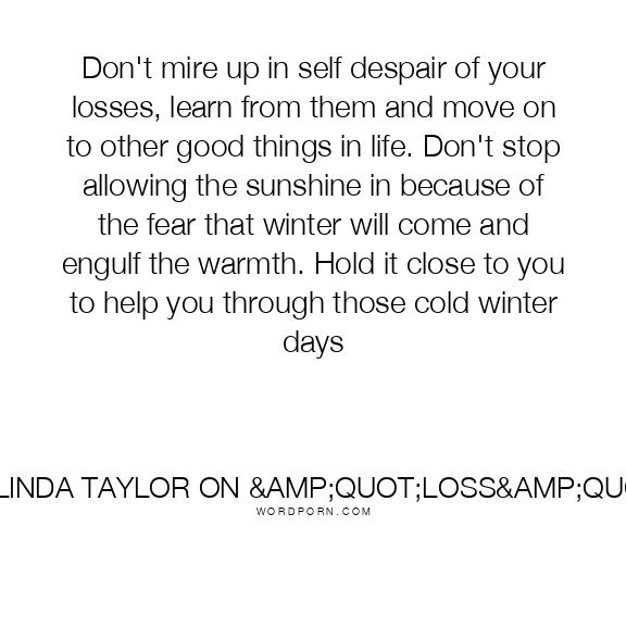 Don't mire up in self despair of your losses, learn from them and move on to other good things in life. Don't stop allowing the sunshine in because of the fear that winter will come and engulf the warmth. Hold it close to you to help you through those cold winter days