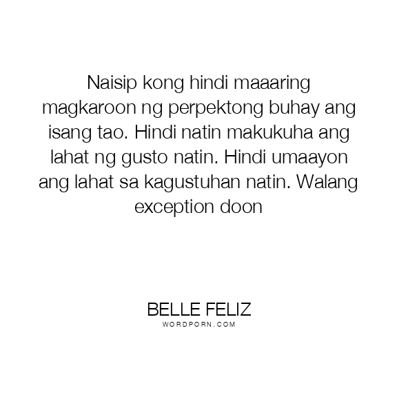 Naisip kong hindi maaaring magkaroon ng perpektong buhay ang isang tao. Hindi natin makukuha ang lahat ng gusto natin. Hindi umaayon ang lahat sa kagustuhan natin. Walang exception doon