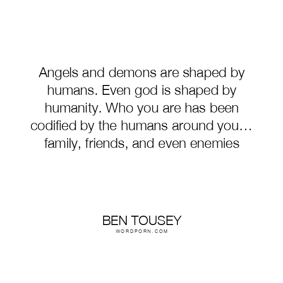 Copy Image Angels and demons are shaped by humans. Even god is shaped by humanity. Who you are has been codified by the humans around you… family, friends, and even enemies Moms Typewriter A A SAVE THIS IMAGE